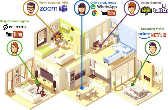 - Los hogares se convirtieron en centros de trabajo, aprendizaje, entretenimiento, compras, etc.